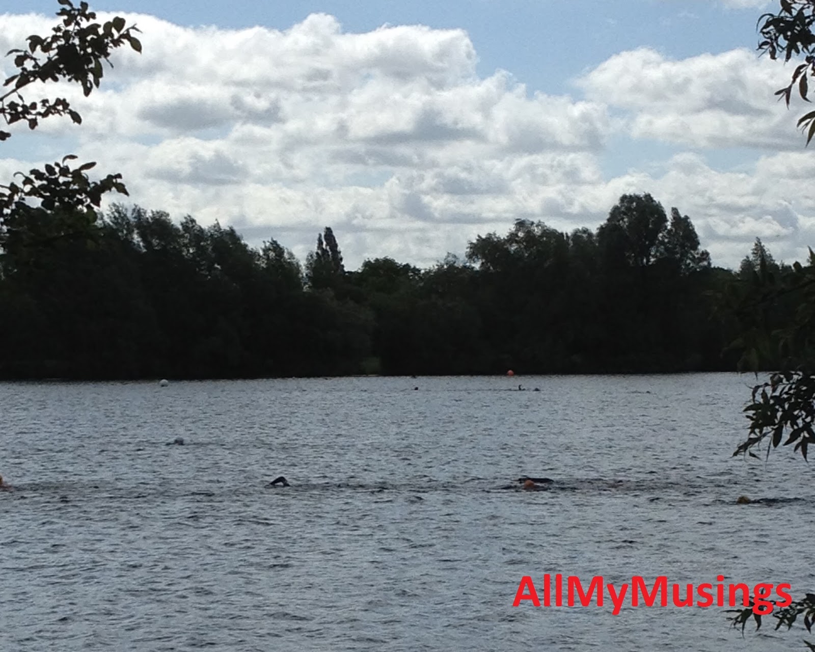 When I arrived it was a little overcast but the car park was heaving. So much busier than on Wednesday night and I could already hear the rhythmic slapping of the swimming going past. From the lake side you can only really see their arms going through the top half of their rotation and the occasion head bob up if someone is 'sighting' - technical term for 'making sure they are going in the right direction'. It's actually a lot harder than you think it is to keep going in a straight line, to a particular point when you are in the water.